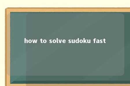 how to solve sudoku fast