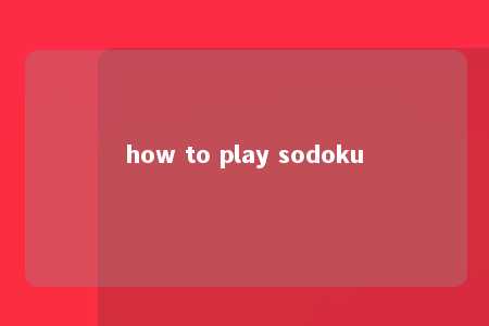 how to play sodoku